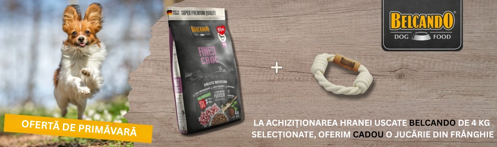 Acum oferim gratuit o jucărie din frânghie cu hrana uscată Belcando selecționată de 4 kg.