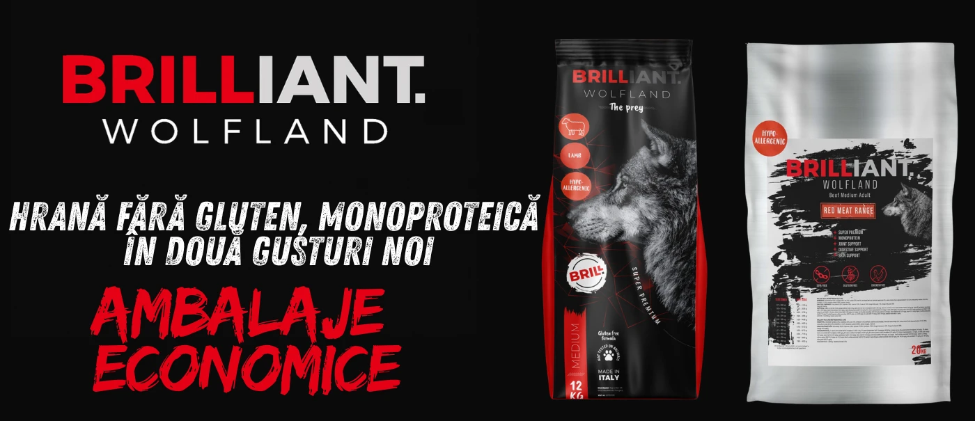 - 🐮 Brilliant Wolfland Hypoallergenic Red Meat Range, o hrană monoproteică cu vită, și